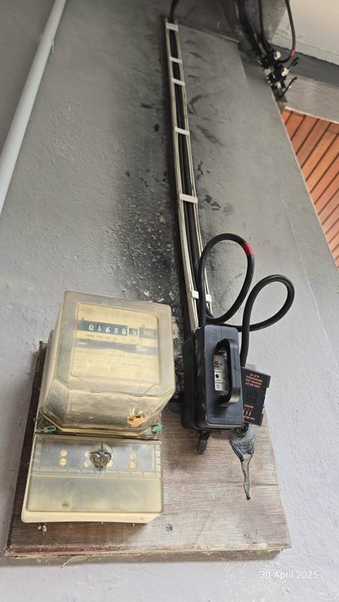However, the wooden meter panel and the visibly damaged meter remained in place. The homeowner was advised to engage a private electrician for further board upgrades.
