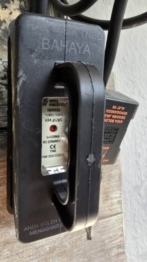 - A 63A main fuse and 25mm² aluminium TNB incoming cable